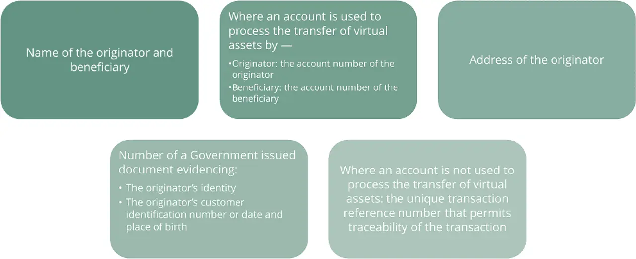 Originating VASPs will be required to collect simultaneously or concurrently with a transfer of virtual assets to a beneficiary VASP or obliged entity, either directly or indirectly: